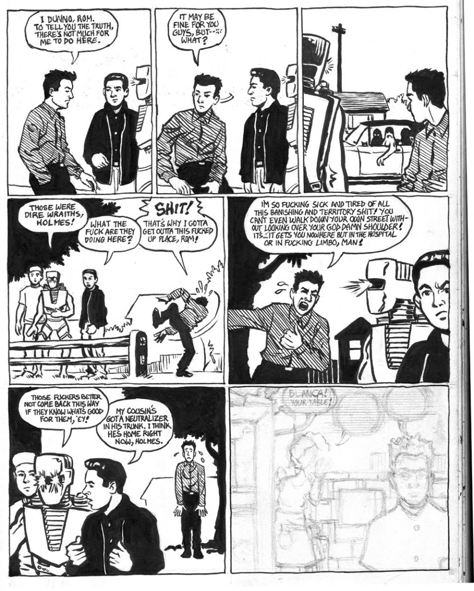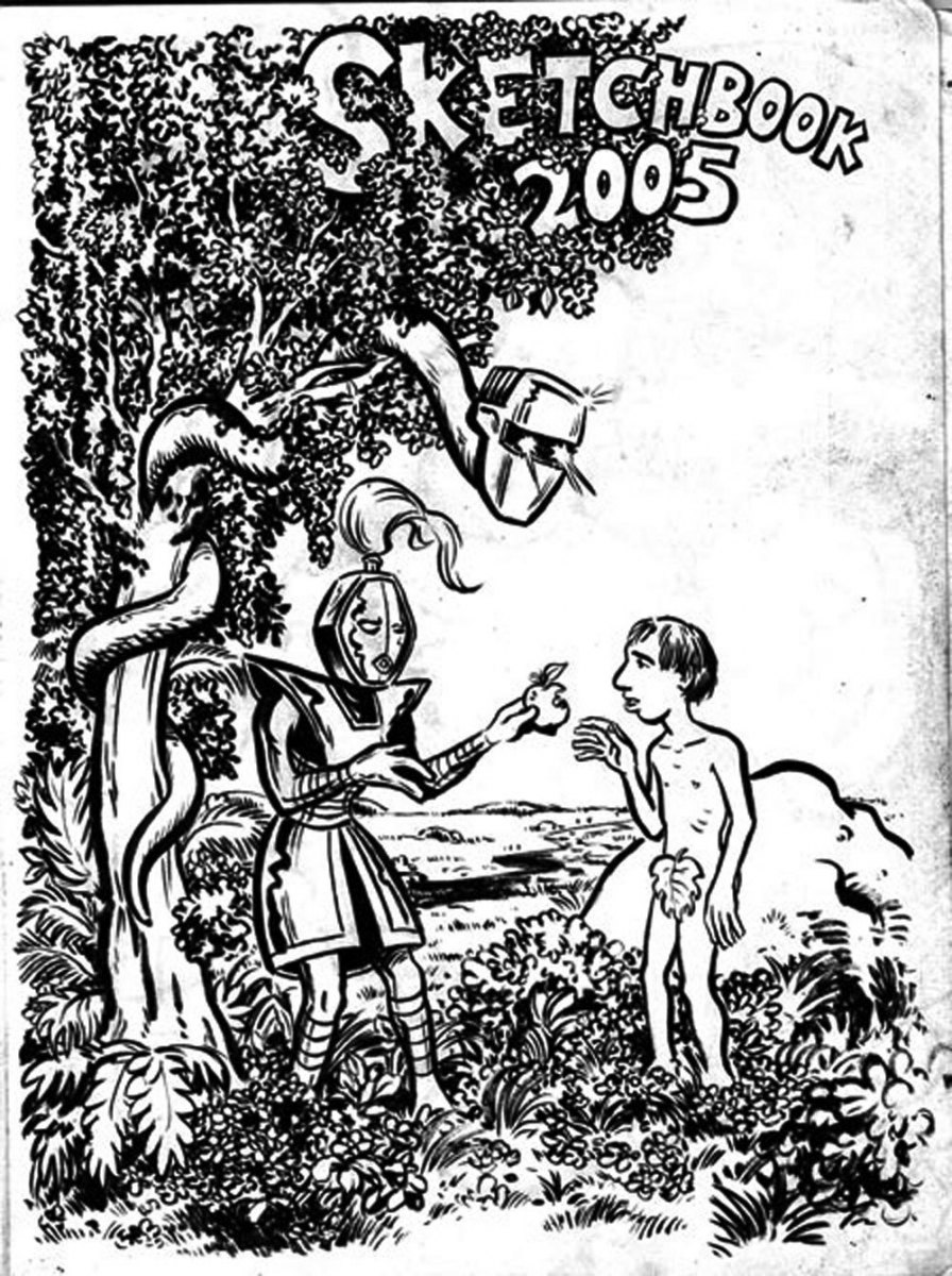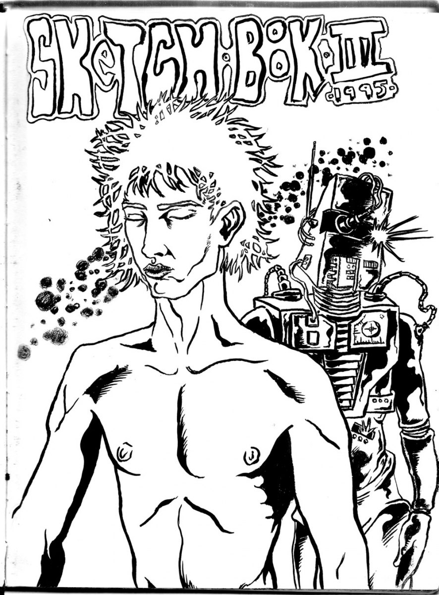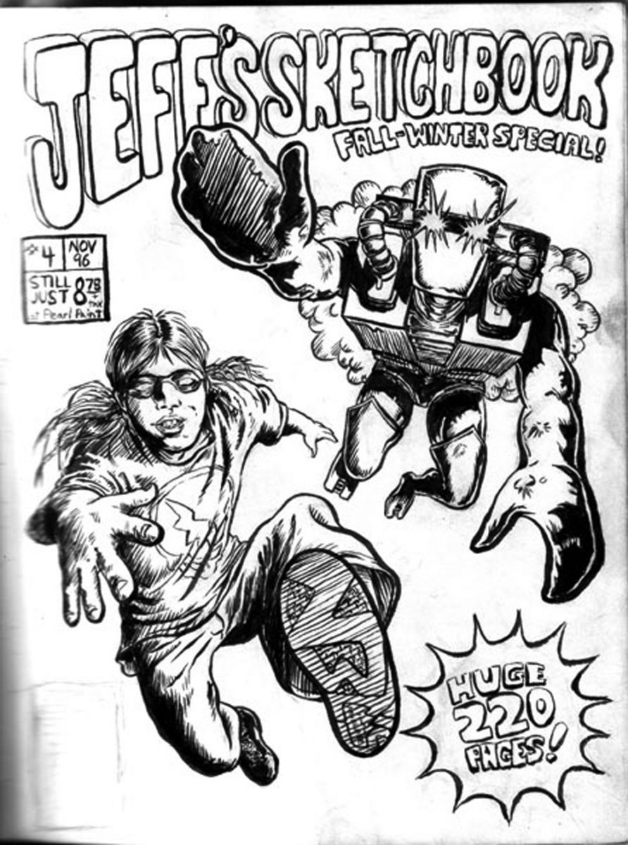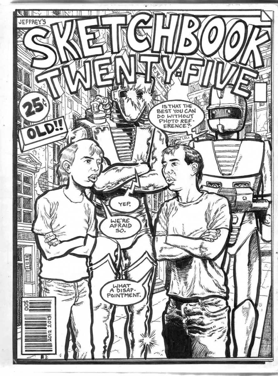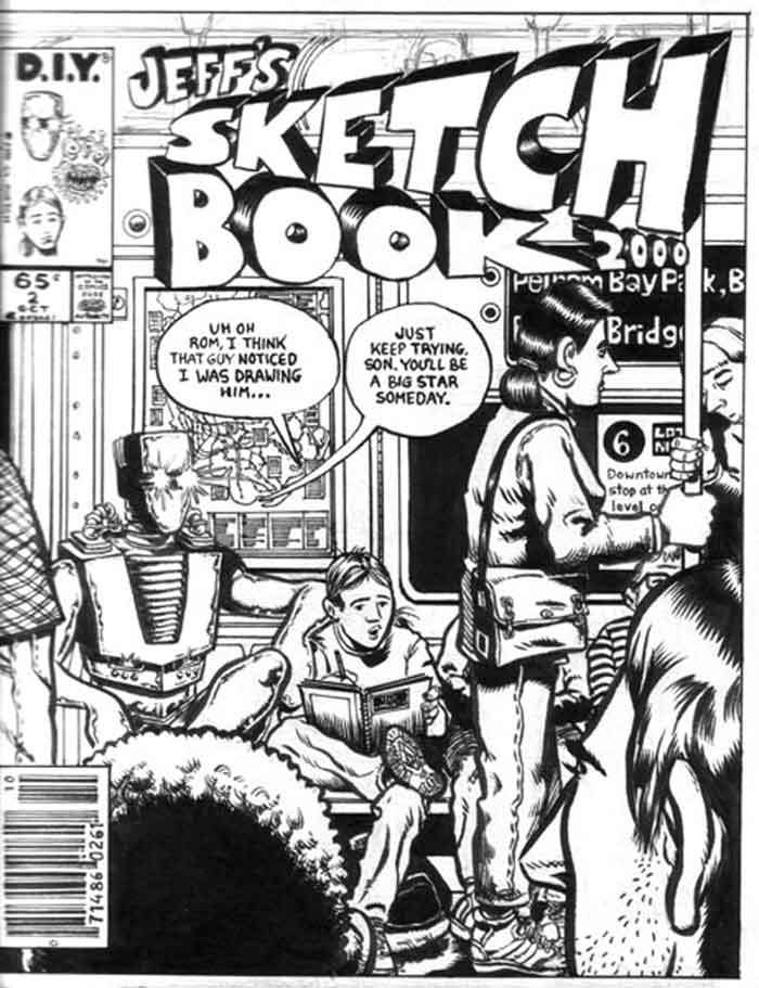 Note from Jeffrey: “The first comic book that I fell in love with was Rom # 7, in 1979. Comic books were only found on newsstands and spinning racks in those days, before comic book stores started to appear a few years later; I was always glad to get my hands on any random comic book, Bat-Man, Ghost Rider, etc, but for whatever reason Rom Spaceknight was the one series I was truly a devoted specific fan of, like, I had to get every issue. I credit Rom with initially inspiring my love of comic books and of drawing!  So I instituted a personal tradition in 1994 that every sketchbook I keep must begin with a drawing of me and Rom together.  Here’s a bunch of my Rom sketchbook pages from over the years.”